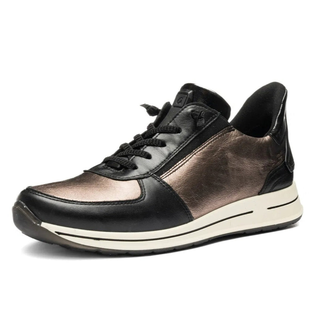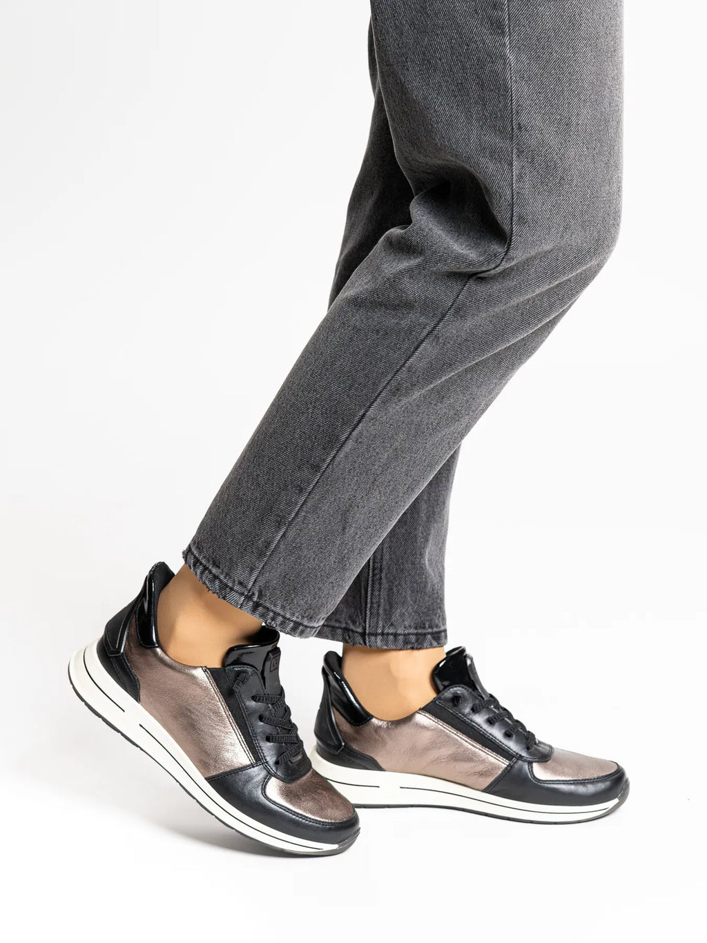 The Ovation slip-on sneaker is yet another stylish AND comfortable walking shoe from Ara. It contains a lot of Ara's trademark comfort features, like the super-soft terry cloth lining, the HighSoft construction, and slip-resistant outsole. Supple leather and suede uppers in contrasting colours give it a retro look, while the easy2go technology (basically a built-in shoe horn) in the heel counter and elasticized laces mean you can just slip them on and off. A great mix of style, comfort, and convenience.