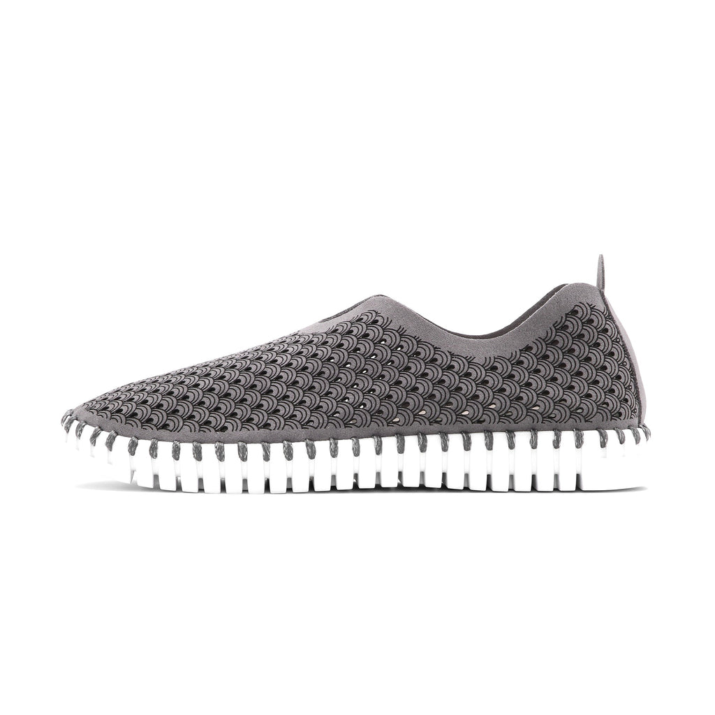 Step into style with the Tulip slip-on sneaker by Ilse Jacobsen. The uppers, made of recycled microfiber, feature a unique laser-cut pattern that is quite breathable. Its super flexible outsole, made of natural and recycled rubber, is stitched with recycled thread. A removable insole means you can try out your own insoles/orthotics inside. With its crazy array of colors, combined with its convenience and light-weight quality, Tulip makes a great everyday or travel shoe.