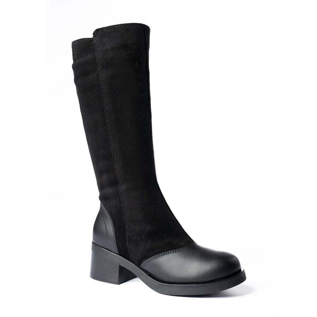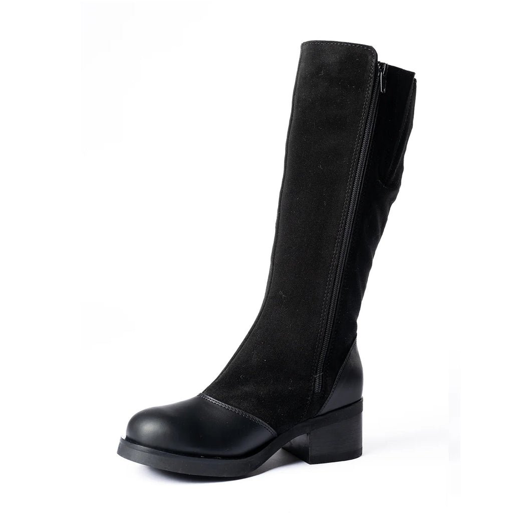 Another fantastic winter boot from Saute Mouton. Made in Québec City, Maria is one of Saute Mouton's dressier boot options, perfect for winter days when you need to look good. The uppers are made of premium waterproof suede and leather, and the interior lining is 100% wool up to the ankle, and then a blanket lining the rest of the way up the leg. A zipper on the inside of the leg makes them easier to get on and off. As you can likely tell from the pictures, the sole does not have the tread of other Saute Mouton boots, so if you are looking for something to trudge through the snow with, you are probably best to look elsewhere.